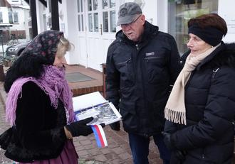 Gästeführerin Christiane Pfaffe (l.) bei ihrer Tour durch das winterliche Burg im Spreewald.