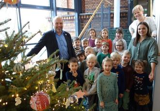 Den Weihnachtsbaum im Amtsgebäude schmückten in diesem Jahr die Kinder aus der Igel- und Mäuschengruppe der Gesundheitskita "Spreewald-Lutki" mit Salzteigfiguren und selbstgebastelten, bunten Kugeln aus Papierstreifen. Zum Schluss gab es natürlich noch ein Gruppenbild mit Amtsdirektor Tobias Hentschel.