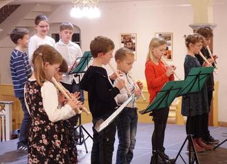 Schon die jüngsten Instrumentalisten, wie hier die Kinder ausd er Blockflötengruppe der Kirchengemeinde, begeistern mit ihren Darbietungen.