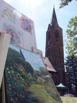 Von Dissener Ansichten inspiriert: Die Dorfkirche in Natur und gemalt beim Plenair 2021.