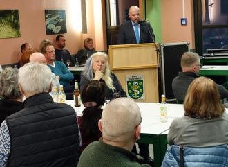 Amtsdirektor Tobias Hentschel während seiner Ansprache auf der Woklapnica in Burg (Spreewald)/Bórkowy (Błota).