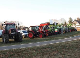 Nach dem Protesttag in Cottbus Anfang Januar trafen sich die Teilnehmer aus dem Amstgebiet mit ihren Fahrzeugen und Traktoren noch einmal auf der Wiese an der Müschener Kreuzung.