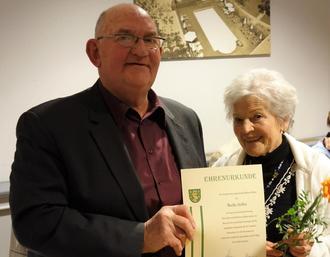 Bürgermeister Hans-Jürgen Dreger zeichnete Martha Steffen mit der Ehrenurkunde der Gemeinde aus.