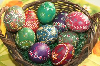 Die bunt verzierten sorbischen Ostereier selbst herzustellen ist gar nicht so schwer. Im Heimatmuseum in Dissen kann jeder, ob jung oder alt, die Kunst der Wachsreservetechnik erlernen und sein eigenes Osterei gestalten. Dabei werden mit Nadel und Federkiel Wachstupfen auf das Ei getragen, bevor dieses gefärbt wird.