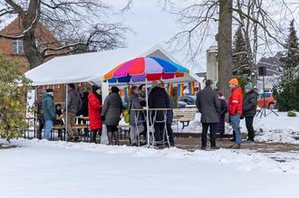 Kälte und Schnee taten der Veranstaltung keinen Abbruch, eher schien das Gegenteil der Fall zu sein. „Mit Wärme im Herzen, mit Menschlichkeit und Liebe, fällt das ‚Farbe bekennen‘ nicht wirklich schwer und wird sich hoffentlich am nächsten Sonntag deutlich zeigen“, drückte Marcel Bülow seine und die Hoffnung der Helferinnen und Helfer aus. (P. Becker)