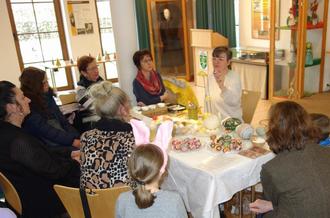 Bärbel Schubert weiht ihre Gäste in die Geheimnisse des Verzierens sorbischer Ostereier ein.
