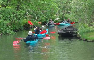 Paddelboote auf dem Burg-Lübbener-Kanal: Radfahren, Wandern, Paddeln und Naturerlebnisse gehören zu den wichtigsten Motiven für einen Urlaub im Spreewald.