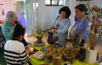 Blick in die Osterwerkstatt im Haus der Begegnung, wo man den Osterkünstlerinnen über die Schulter schauen kann.
