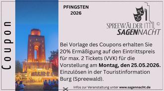 Einwohnerinnen und Einwohner des Amtes erhalten bei Vorlage des Originalcoupons eine Ermäßigung auf den Kauf von zwei Eintrittskarten für Montag, den 25. Mai.