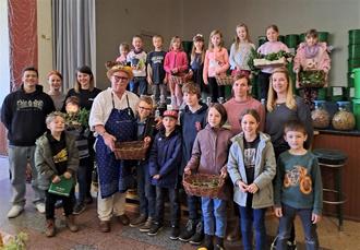 Die „Kräuterkinder“sowie die Erzieherinnen und Erzieher des Hortes LIPA aus Burg (Spreewald) mit Peter Franke