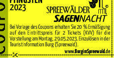 Die Einwohnerinnen und Einwohner des Amtes erhalten gegen Vorlage des Coupons ermäßigte Karten für die Vorstellung am 29. Mai. (Gilt nur für den Kauf in der Burger Touristinformation.)