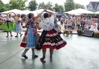 Auf der Bühne sind Traditions- und Trachtenvereine wie "Barbuk" aus Heinersbrück mit Musik und Tänzen zu erleben.