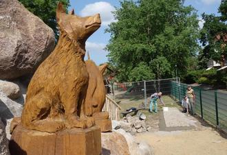 Viele tolle Details machen den Spielplatz einzigartig. Im Hintergrund bei den letzten Arbeiten (v. r.): Walter Chilla, Gerd Noack und Joachim Dieke.