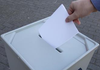 Symbolfoto: Ein Stimmzettel wird in die Wahlurne gesteckt.