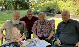 Erste Beratung der Burger Ortschronisten (v. r.) Klaus Gebler, Ingmar Steffen und Dr. Jochen Piezonka mit Bürgermeister Bernd Ragotzky (hinten).