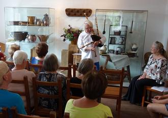 Noch bis Ende August ist im Heimatmuseum Dissen die Ausstellung über Bäuerliche Keramik zu sehen. Zur Eröffnung spielte Gerhard Pauker auf verschiedenen Dudelsäcken. Die Ausstellung gibt einen kleinen Abriss von der slawischen Keramik des frühen Mittelalters bis hin zu bunt geschwämmelter Bunzlauer Keramik, von Gebrauchsgeschirr bis hin zu edlen Stücken.