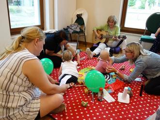 Viel Spiel, Spaß und gute Laune gab es beim ersten Familien- und Sommerfest des SOS Familien- und Beratungszentrums. So wurden gemeinsam mit Logopädin Sylvia Arnold Kinderlieder gesungen