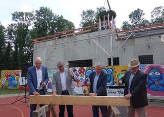 „Dank der Fördergelder aus dem Strukturwandelprogramm entsteht mit dem Kultur- und Sportzentrum das größte Infrastrukturprojekt in der Geschichte der Gemeinde Burg (Spreewald)“, sagt Amtsdirektor Tobias Hentschel anlässlich des gestern begangenen Richtfestes.