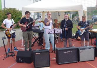 Auch die Schulband der Grund- und Oberschule war beim Richtfest mit dabei