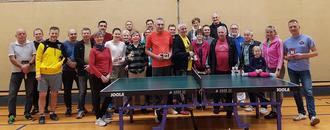 Zum Glück sterben Traditionen nicht aus! Deshalb veranstalteten wir, nach einer bremsenden Corona-Zeit, das sportliche Tischtennisturnier am ersten Samstag im neuen Jahr. Am Nachmittag trafen sich 26 sportlich begeisterte Tischtennisspieler zu einem Match. Bis zum Abend wurden die Tischtennisbälle an sechs Platten geschmettert. Beim Finale ging es atemberaubend zu, alle Zuschauer fieberten dem Spiel mit. Den Pokal (Michas Eigenbau) nahm letztendlich Hans Siegert mit nach Hause, der 2. Platz ging an Jürgen Größ und den 3. Platz erkämpfte sich Peter Staude.