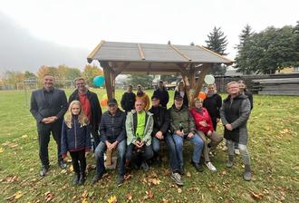 Die letzte Anschaffung war eine Sitzgruppe, welche dann gemeinsam eingeweiht wurde. Sie bildet nun auf dem Spielplatz - direkt am Wanderweg - eine gute Gelegenheit für eine Rast. Probieren Sie es aus!