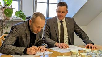 Unterzeichnung des Zuwendungsvertrages (links Martin Flechsig - Geschäftsführer mitteldeutsche IT, rechts Bürgermeister Thomas Peters)