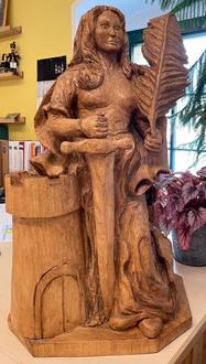 Eine weitere Osterüberraschung gab es für uns: Sabine Lang, vielen bekannt als „Schnitzbiene“, hat unsere neue Hl. Barbara fertiggestellt und uns an Ostern übergeben. Die Hl. Barbara ist u.a. die Schutzpatronin der Bergleute. Die „Schnitzbiene“ schuf unsere neue Schutzpatronin, so wie unseren Bergmann am Eingangstor des Außengeländes, sehr detailreich. Die ca. 80 cm hohe Figur aus Eichenholz ist bereits untertage ins „Mutter-Gottes-Lager“ gezogen und wird so von allen Gästen auf dem Weg zum unterirdischen See gesehen. Auch sonst gibt es einige Neuerungen untertage – ein Wiederholungsbesuch lohnt sich!