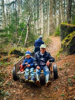 Uns Zwieslern war es ein wahres Bedürfnis, den Quellbereich wieder in Ordnung zu bringen. Und so trafen sich am letzten Märzwochenende viele helfende Hände. Ganz ohne große Absprachen waren genügend Schubkarren, Harken, Schaufeln und Sägen zum Einsatz bereit. Es war ein wunderbares Miteinander. Von der Vierjährigen bis zum 82 Jahre alten Zwiesler Ureinwohner fanden alle ihre Aufgabe. Eine besondere Überraschung hielt Herr Scharfe bereit. Er stellte neben dem Rastplatz ein handgearbeitetes Holzschild mit der geschnitzten Inschrift „Zwieselquelle“ auf.