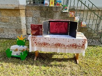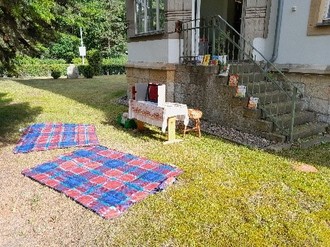 Mithilfe des aus Japan stammenden Kamishibai (Erzähltheater) wurden die Kinder nach einem kleinen Rundgang durch die Bibliotheksbestände in die Welt der Bücher und Bibliothek eingeführt. Das Wetter meinte es gut und so konnten wir den schönen Garten am Bürgerhaus nutzen und die Sonne genießen. Es machte den großen wie den kleinen Zuhörern Spaß und kann nach Bedarf fortgesetzt werden. Nur so lernen die Kinder die Vielfalt des geschriebenen Wortes kennen und die Möglichkeit, selbst Geschichten zu erfinden oder zu erzählen.