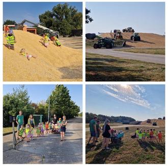 Schon kurz nach der erfolgreichen Kürbisernte folgte ein Besuch des Agrarunternehmen Oberhoff in Zwethau. Dort haben wir eine tolle Führung durch die Familie Oberhoff erhalten und konnten spannende Einblicke in die Landwirtschaft gewinnen. Die Kinder staunten über das riesige Betriebsgelände und die vielen Traktoren. Durch die Größe des Unternehmens lernten sie außerdem die verschiedenen Berufe kennen, welche in der Landwirtschaft eine Rolle spielen. Der Maishaufen, welcher sonst als Futter für die Schweine verwendet wird, bot an diesem Tag viel Platz zum Toben und rundete den Besuch im Agrarunternehmen ab. Wir bedanken uns bei der Familie Oberhoff, die diesen Vormittag für unsere Kinder so liebevoll und spannend gestaltet hat.