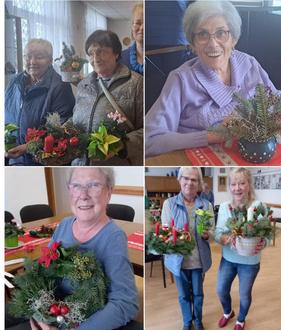 Gesagt, getan. Unsere beiden Kreativfrauen Urte und Adelheit kümmerten sich im Vorfeld um ausreichendes Material, Tannengrün und dekorativem Zubehör. Nach dem gemeinsamen Kaffeetrinken und einigen wichtigen Infos durch die Vorsitzende konnte die „Kreativwerkstatt“ eröffnet werden. Emsig suchte sich jeder das passende Material zur Herstellung des Gesteckes und das Resultat des Nachmittags konnte sich sehen lassen. Stolz auf die selbst kreierten Adventsschalen traten alle Beteiligten zufrieden den Heimweg an. Nun freuen wir uns auf die nächsten Höhepunkte in der Vorweihnachtszeit. Wir besuchen die ostelbische Seniorenweihnachtsfeier in Beilrode, erleben im Spreewald eine Adventsglühweinfahrt mit dem Kahn und freuen uns natürlich auf die alljährliche Weihnachtsfeier der Ortsgruppe, wie immer mit den Kids vom Käferparadies Dautzschen mit einem tollen Programm.