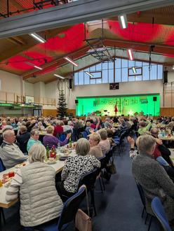 Die Erinnerung an die Weihnachtszeit wird geprägt von dem Duft von Weihnachtsgebäck und dem Kerzenschein, der den Raum erhellt. Das Jahr 2025 befindet sich auf der Zielgeraden. Am 28.11.2025 fand die 18. Auflage der Seniorenweihnachtsfeier der Gemeinde Beilrode und Arzberg in der Ostelbienhalle Beilrode statt. Diese traditionsreiche, vorweihnachtliche Feier verbrachten an diesem Nachmittag ca. 330 Senioren gemeinsam in festlicher und stimmungsvoller Atmosphäre. Durch die tatkräftige Unterstützung aller Mitwirkenden konnte sich die Halle sowie die Bühne im festlichen Ambiente präsentieren. Danke an alle freiwilligen Helfer und fleißigen Hände im Hintergrund für ihr persönliches Engagement. Die Begrüßung aller Anwesenden übernahm Herr Holger Reinboth, Bürgermeister von Arzberg. Es war ihm ein Bedürfnis Dankesworte an alle Beteiligten sowie Sponsoren zu richten. Mit dieser Veranstaltung soll unseren Senioren eine liebenswerte Würdigung zu teil werden. Abschließend wünschte er allen Anwesenden einen gemütlichen Nachmittag eingebettet in weihnachtlichem Flair. Leider war es Herrn Vetter, Bürgermeister der Gemeinde Beilrode nicht möglich, persönlich teilzunehmen, da nach einer Beratung in Dresden die Deutsche Bahn ihn im Stich ließ.