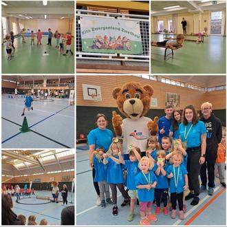 Mit vollem Eifer und immer gut gelaunt fuhren wir einmal pro Woche zur Sportstunde in die Kinderoase nach Beilrode. Auf dem Programm stand ein gezieltes Training für den Teddy-Cup, der auch in diesem Jahr einmal mehr in der Wasserturmturnhalle stattgefunden hat. Zu absolvieren gab es fünf Stationen, in denen motorische und kognitive Fähigkeiten abverlangt wurden. Bestens vorbereitet starteten unsere 12 Zwerge in den Wettbewerb. Mit dem Fokus auf Spaß und neue sportliche Erfahrungen wurden die unterschiedlichen Stationen gemeistert. In diesem Zusammenhang bedanken wir uns bei den Kollegen und Kolleginnen der Kinderoase in Beilrode für die Bereitstellung des Turnraumes sowie bei den Eltern, die uns beim Training und im Wettbewerb unterstützt haben.