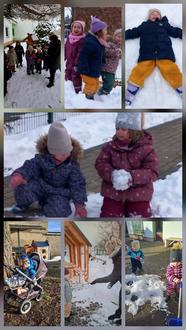 Warm eingepackt ging es im Januar für die Kinder ins verschneite Außengelände, welches sofort zum Spielen und Entdecken einlud. Ob Schneebälle formen, Vögel füttern, Schlitten fahren oder Schneemänner bauen - die Begeisterung war überall zu spüren. Neben dem Spaß stand auch das Lernen im Vordergrund. Die Kinder erfuhren spielerisch, wie sich Schnee anfühlt, warum er schmilzt und wie wichtig passende Winterbekleidung ist.
