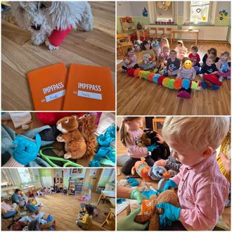 Ein Highlight zum Abschluss unseres Projektes war der Besuch einer Tierärztin in unserer Einrichtung. Anschaulich und kindgerecht erklärte sie den Kindern, welche Aufgaben ein Tierarzt oder eine Tierärztin hat und wie ein krankes Eichhörnchen untersucht wird. Außerdem durfte jedes Kind sein Lieblingskuscheltier von zuhause mitbringen und dieses gemeinsam mit der Tierärztin verarzten. Jedes Kuscheltier erhielt einen eigenen Impfpass.