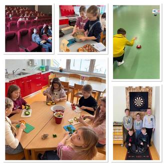 In der zweiten Woche unserer Winterferien standen einige Höhepunkte auf dem Programm. Neben einem Kino-Ausflug, backten wir leckeres Paprikabrot, bauten unser eigenes Massagestudio und testeten im Turnraum neue Spiele aus. Außerdem stand ein Dartturnier auf dem Plan, bei dem die besten Spieler gekürt wurden.