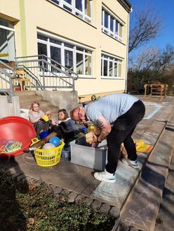 Am 28.03.2025 war es wieder so weit – der Frühjahrsputz stand in der Kinderoase auf dem Plan. Zahlreiche fleißige kleine und große Helfer sorgten dafür, dass unser Außenbereich in der Frühjahrssonne neu erstrahlt. Überall auf dem Gelände wurde emsig geputzt, geharkt und Unkraut gejätet. Zur Pflege unserer Benjeshecke wurde neues Schnittgut eingeflochten und Blumen in leuchtenden Farben wurden auf die Beete gepflanzt. Der Spielsand fand seinen Weg zurück in die Sandkästen, das Volleyballfeld und unsere neue Wasserwand wurde errichtet. Das heißbegehrte Trampolin der Kinder wurde aus dem Winterschlaf geholt und wieder aufgestellt. Nach getaner Arbeit stärkten die Kinder und Eltern sich mit einem erfrischenden Getränk und einer leckeren Bratwurst. Ein herzliches Dankeschön vom Team der Kinderoase Beilrode an alle helfenden Hände.