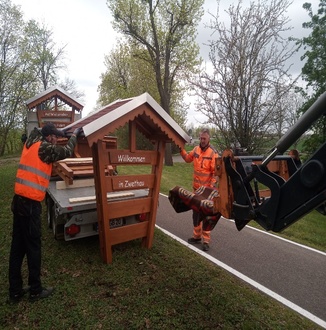 Schick sehen sie aus – die neuen Ortseingangsstehlen in Zwethau! Im letzten Jahr erhielt die Gemeinde Beilrode eine finanzielle Unterstützung von der Wander- und Pilgerakademie Sachsen für den ostelbischen Lutherweg. „Das Geld haben wir sinnvoll investiert.“ bestätigt Bürgermeister Rene Vetter. So wurden in Zwethau, Beilrode und Döbrichau Stempelstellen für die Wanderer und Gäste des Lutherweges eingerichtet und neue Wegeschilder am Lutherweg angebracht. Auch konnten 2 neue Holzsitzgarnituren und die erwähnten 3 neuen Ortseingangsstehlen umgesetzt werden. Die alten Stehlen waren schon sehr in die Jahre gekommen. Über die Holzwerkstatt der JVA Torgau wurden sowohl die Sitzgarnituren als auch die neuen Stehlen angefertigt. Aufgestellt durch die Mitarbeiter des Bauhofes des Gemeinde konnte somit das Ortsbild von Zwethau weiter verschönert werden.