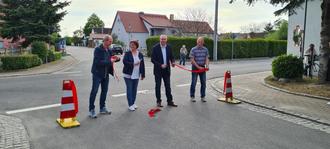 Am Montag, 29. April, war es endlich so weit – die Falkenberger Straße in Döbrichau wurde offiziell wieder freigegeben! Viele Einwohner waren gekommen, um zusammen mit Heiko Trinks (Landesamt für Straßenbau und Verkehr), Ortsvorsteherin Anja Uischner, Bürgermeister René Vetter und Planer Detlef Bölke (v.l.n.r.) dieses Ergenis zu feiern. Bei dem Projekt handelt es sich um eine erfolgreiche Kooperation zwischen dem Landesamt für Straßebau und Verkehr und der Gemeinde Beilrode. Die Erneuerung und Instandsetzung des Gehweges, der Grundstückszufahrten sowie der Straße erfolgte auf einer Länge von rund 580 m. Baubeginn der Gesamtmaßnahme war am 12. Juli 2023. Witterungsbedingt mussten die Arbeiten von Mitte Dezember 2023 bis Anfang März 2024 unterbrochen werden. Die Gemeinde Beilrode beauftragte Arbeiten für Gehweg, Borde und Entwässerungsrinne von insgesamt 393 TEUR und erhielt eine Förderung von 139 TEUR (LEADER). Die Baukosten für den Freistaat Sachsen belaufen sich auf rund 360.000 Euro und werden mit Steuermitteln auf Grundlage des von den Abgeordneten des Sächsischen Landtags beschlossenen Haushaltes finanziert.