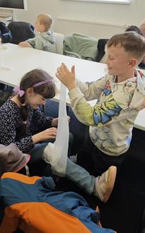 Am 5. Mai fuhren wir Kinder der Hortgruppe 1a gemeinsam mit unserer Hortnerin Frau Albrecht und Hannahs Mama, Frau Pankrath, nach dem Unterricht mit dem Bus nach Torgau. Unser Ziel war die AOK Geschäftsstelle. Von Weitem konnten wir diese drei Buchstaben voller Stolz schon lesen. Freundlich erwartet wurden wir bereits von Frau Spalteholz, einer Mitarbeiterin der AOK. Als jedes Kind einen Platz an dem langen Tisch gefunden hatte, ging es auch schon los. Von Frau Neuendorf (Mitarbeiterin des ASB) erfuhren wir sehr viel Neues rund um die Erste Hilfe. Wir lernten wie man Verbände anlegt und wie wir uns verhalten sollen, wenn sich jemand verletzt hat. Nicht schlecht staunten die Erwachsenen jedoch, was wir Kinder schon so alles zu diesem Thema wussten. Dann durften wir unsere Kenntnisse bei einer kleinen Prüfung unter Beweis stellen. Jedes Kind erhielt an diesem Tag den „Pflasterführerschein“ und darauf waren wir sehr stolz. Viele kleine Geschenke wanderten zur Belohnung in unsere Rucksäcke.