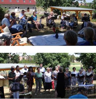 Den Auftakt gaben der Posaunenchor Arzberg unter Leitung von Manfred Heinze, der Regionale Kirchenchor unter Leitung von Silke Dolecek und Andreas Albrecht mit einer musikalischen Andacht im „Garten“, im Schatten der Heilandskirche Beilrode. Mancher saß und war hier das erste Mal. Und es saß sich gut bei Kaffee, Kuchen und guten Gesprächen am Nachmittag. Zur gleichen Zeit luden verschiedene Angebote im Umfeld des Gemeindezentrums zum Mitmachen oder Anschauen ein.