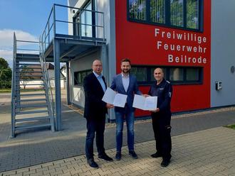 Der August hat gut begonnen! Am 1. August gab es vom 2. Beigeordneten des Landkreises, Jens Kabisch, die Fördermittel (insgesamt 34 TEuro) für einen Kommandowagen der Feuerwehr Beilrode und für einen Löschwasserbrunnen.