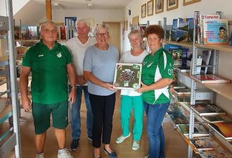 Die Zahl der Arbeitsstunden, die in unsere Ausstellung zur Sportgeschichte unserer Dörfer geflossen sind, haben wir nicht gezählt, aber wir können sagen, dass wir dank des überaus umfangreichen Archiv-Materials und der Erzählungen und Bildern vieler Sportler auch unsere Jugend in unserer Erinnerung auflebte. Ob es die Kegler-Geschichten von Frank Lehmann, selbst Vereins-Vorsitzender von 1995 bis 2005, die Fußball-Schwärmerei von Manfred Winter, die tatkräftige Hilfe von Christine Krug oder die Kindheitserinnerungen zum Schulsport oder der Volleyball-Geschichte von Kerstin Karius waren, jeder von uns hat sich wiedergefunden. Nun, mit der offiziellen Übergabe der Fotobücher an unsere Gemeinde-Bibliothek, endet für uns dieser Abschnitt. Das Fotobuch selbst kann noch bestellt werden, bei Bedarf bitte eine E-Mail an kerstin.karius@gmx.de. Auch die Wechsel-Rahmen im Sportlerheim werden weiter“leben“. Wir möchten allen ortsansässigen Vereinen und Gruppen anbieten, diese für eigene Dokumentationen zu nutzen. Also Kinder und Jugendliche, Radwanderer, Sportfrauen, Volkssolidarität, Volleyballer und vielleicht irgendwann auch Kegler(?) wendet euch dazu bitte an Manfred Winter – er wird unser „Herr der Tafeln“ sein.