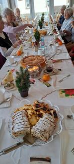 19 Krippener Senioren trafen sich zum letzten Mal 2022 im Vereinshaus zum Adventskaffeetrinken. Wir wurden sehr herzlich mit einer hübschen, weihnachtlichen und reichlich gedeckten Festtafel empfangen.