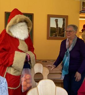 Nicht nur der Nikolaus hat uns bedacht, sogar der Weihnachtsmann hat uns besucht. Nachdem jeder ein Lied oder Gedicht vorgetragen hatte, wurde er aus dem Sack des Weihnachtsmannes belohnt.