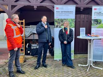 v.l.n.r.: Herr Ulrich Mölke, Portfolioleiter Projekte Dresden/Zwickau; Herr Thomas Kunack, Bürgermeister der Stadt Bad Schandau; Frau Natalie Klein, Stakeholdermanagement, DB InfraGO AG