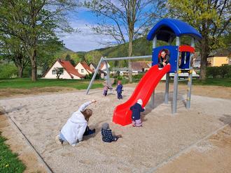 Auf dem beliebten Spielplatz in Prossen wurde eine Turmkombination aus Rutsche und Schaukel errichtet.