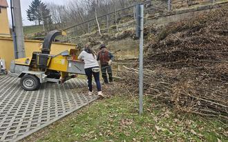 So wurde der Baum- und Strauchverschnitt von Herbst und Winter, welcher notwendig wurde um etwa die Verkehrssicherheit auf der Hauptstraße, im Niederdorf und am Dorfteich weiter zu gewährleisten, gehäckselt und entsorgt. Ein Teil der Späne wurde kurzerhand verwendet, um das vom Ortschaftsrat selbst gepflegte und bepflanzte Rondell an der „Einkehr“ zu verschönern. Wir bedanken uns bei Maria Große für die tatkräftige Unterstützung.