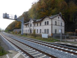 Vielleicht an dieser Stelle noch weiteres Interessantes aus der Geschichte des denkmalgeschützten Hauses. Als ein Problem für die hier wohnenden Familien der Zollbeamten stellte sich nämlich schon bald der Mangel an Wasser heraus. Sämtliches Brauchwasser musste dem angrenzenden Staudiggraben entnommen werden. Bei stärkerem Regen war das Wasser immer verunreinigt. Man beschloss daher 1860 mit Genehmigung der Forstverwaltung, die ca. 80 Meter oberhalb liegende Quelle zu fassen und das Wasser in einer Rohrleitung zum Gebäude zu leiten. Dieses Vorhaben rief nun aber den Fährbesitzer Protze auf den Plan, weil der sein Wasser ebenfalls aus dem gleichen Graben bezog und nun befürchtete von der Quelle abgeschnitten zu werden. Es folgten langjährige Verhandlungen. Erst im Jahre 1892 veränderte sich die Wassersituation in den Grundstücken um die Bahnstation grundlegend. Mit dem Eigentümer einer Quelle auf dem privaten Grundstück Nr. 102c am Bahnhofsberg, Ernst Erdmann Liebstein, konnte ein Vertrag geschlossen werden, der die Fassung und Ableitung dessen Wassers beinhaltete. Zum Bahnhof entstand eine 541 Meter lange Rohrleitung.