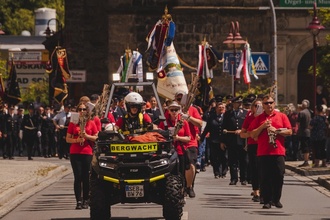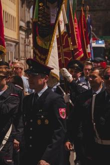 Das Jubiläumswochenende begann am Samstag um 13.30 Uhr mit einem großen Festumzug durch unsere Stadt. Dieser wurde von der Schalmeienkapelle Bad Gottleuba begleitet. Zahlreiche Kameradinnen und Kameraden aus den umliegenden Feuerwehren sowie der Feuerwehren unserer Partnerstädte nahmen am Umzug teil.